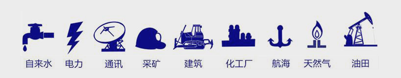 廣泛應用于:自來水、電力、通訊、采礦、建筑、化工廠、航海、天然氣、油田等行業(yè)